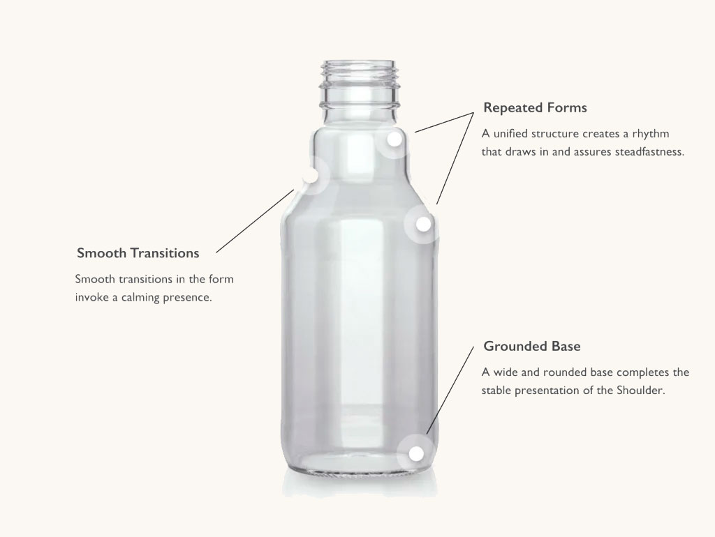 Based on a classic shape, the Shoulder is designed to bring a sense of security in familiarity. The repetition of cylindrical forms creates a sense of symmetry and peace that one can trust and rely on. On the shelf, the shoulder stands out with its elevated presence and reassuring stance.