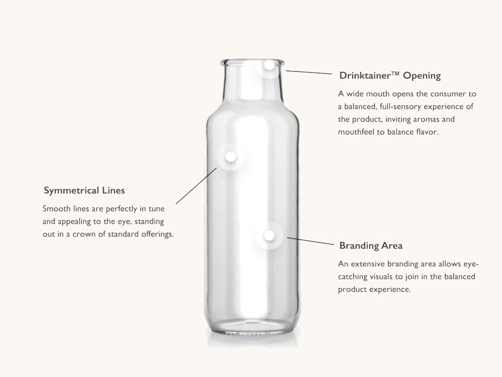A wide mouth opens the consumer to a balanced, full-sensory experience of the product, inviting aromas and mouthfeel to balance flavor.