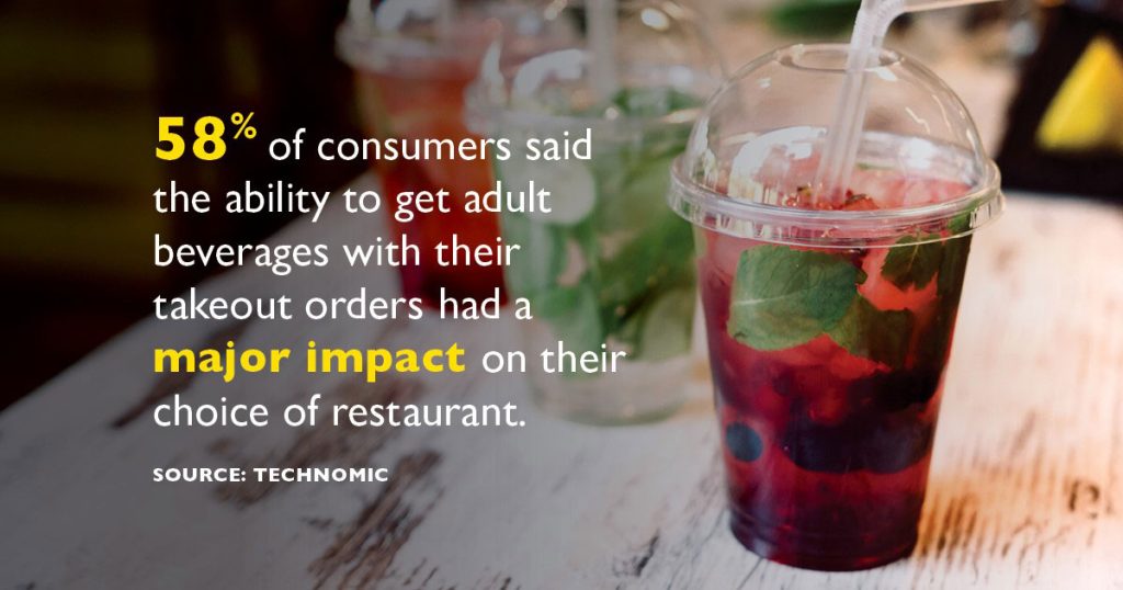 Around 20% of adult consumers and roughly three out of 10 millennials have added alcohol to a take-out or delivery order since the pandemic began. According to Technomic, 58% of consumers surveyed for the Alcohol To-Go study said the ability to get adult beverages with their takeout orders had a major impact on their choice of restaurant.